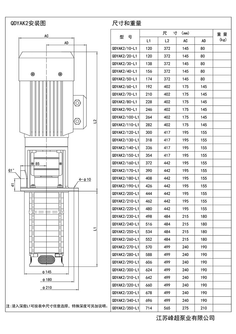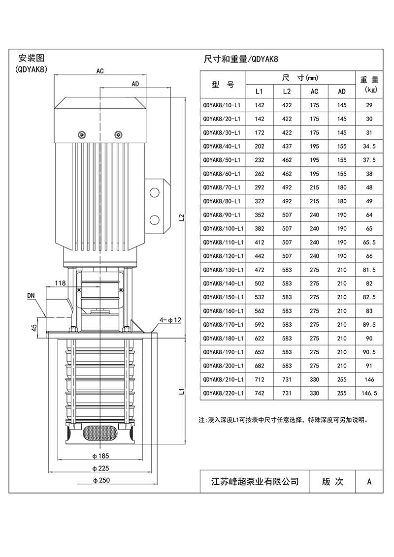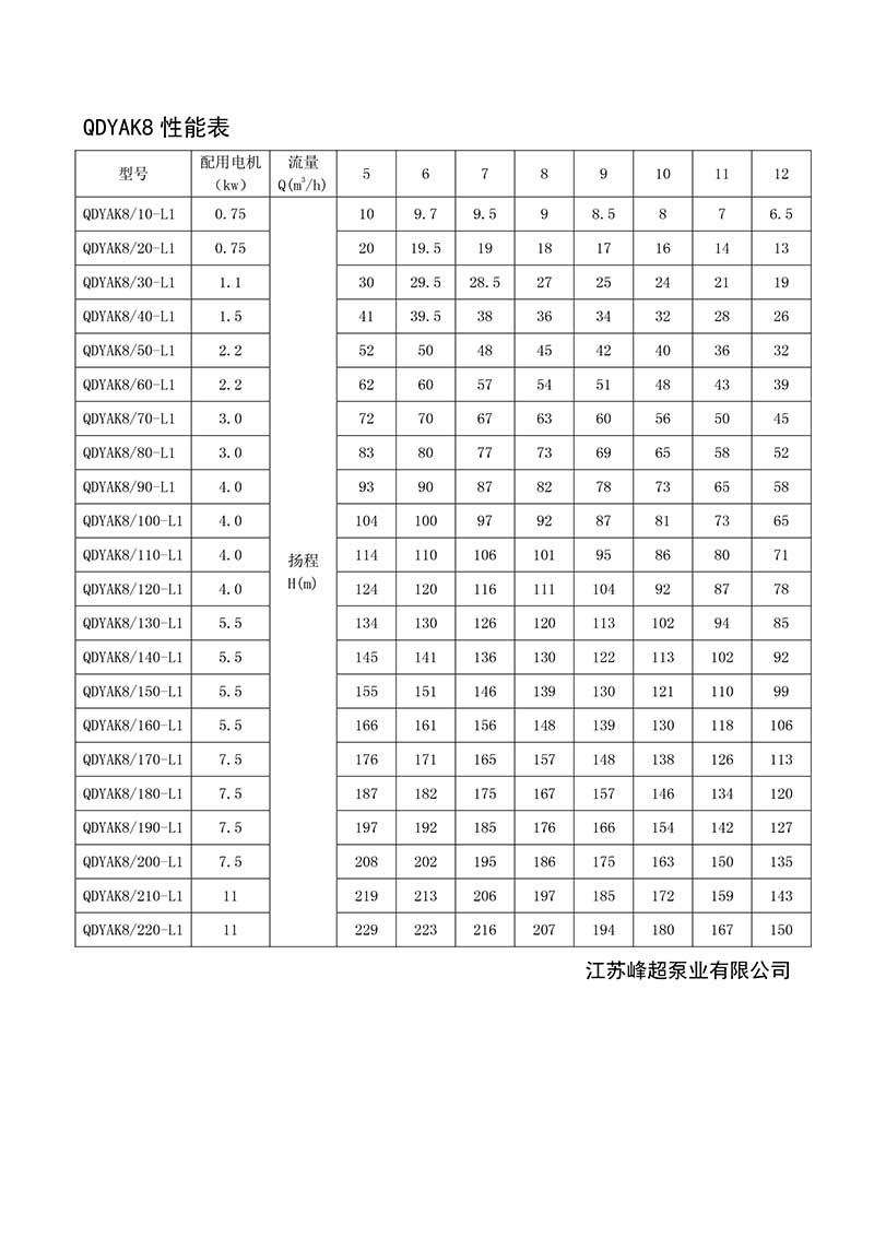 QDYAK8機(jī)床高壓泵性能和安裝尺寸: